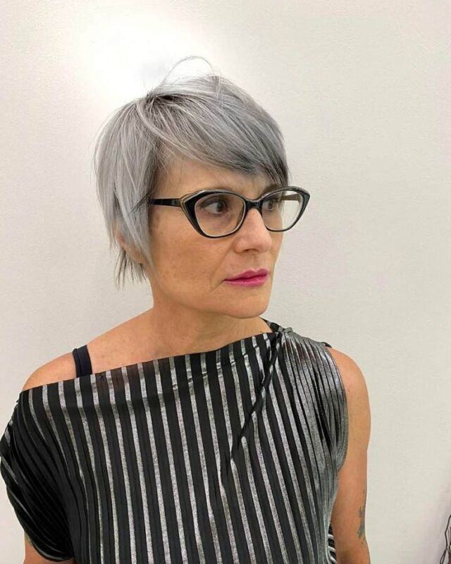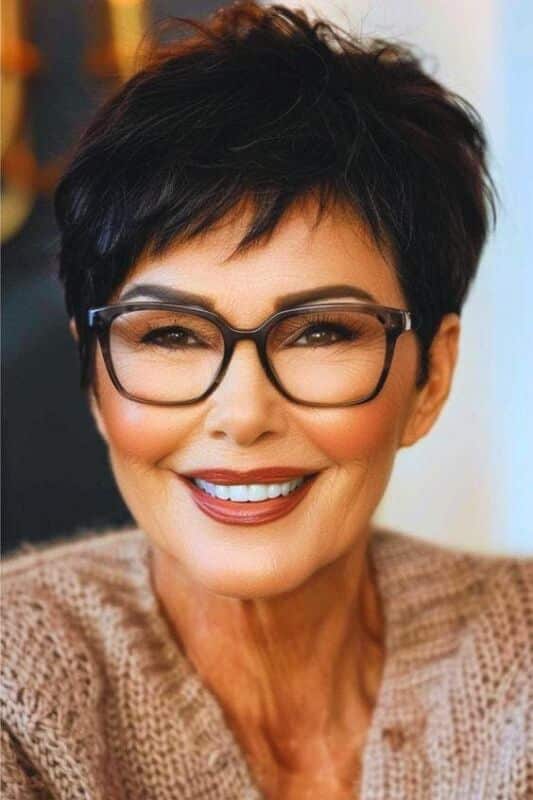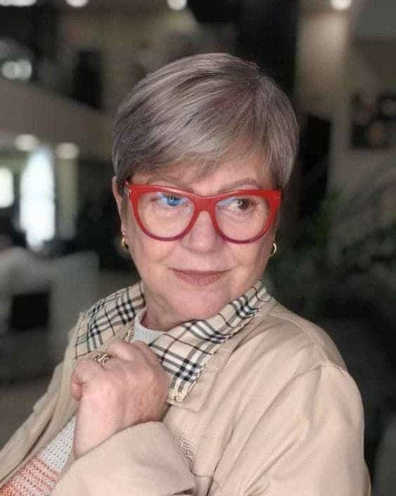 Les coupes courtes ont un effet liftant naturel, clarifiant la ligne de la mâchoire et rehaussant les pommettes. Cela est particulièrement avantageux pour les femmes de 60 ans qui souhaitent rafraîchir leur apparence. En combinaison avec des lunettes, une coupe courte crée un look cohérent et sophistiqué.